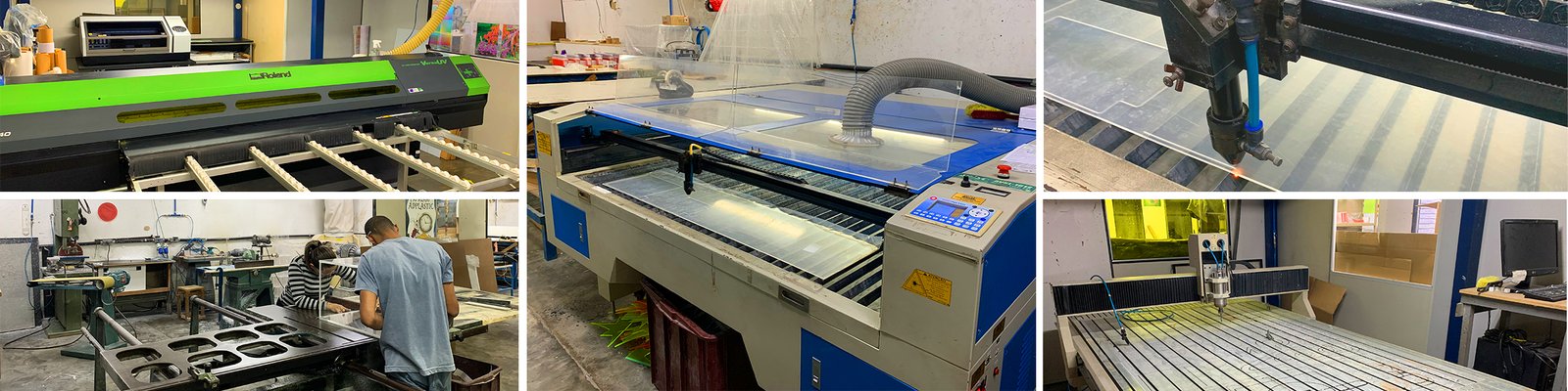 Embora o acrílico seja nosso material principal, também incorporamos outros materiais conforme necessário para atender aos requisitos específicos do projeto.